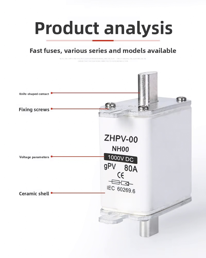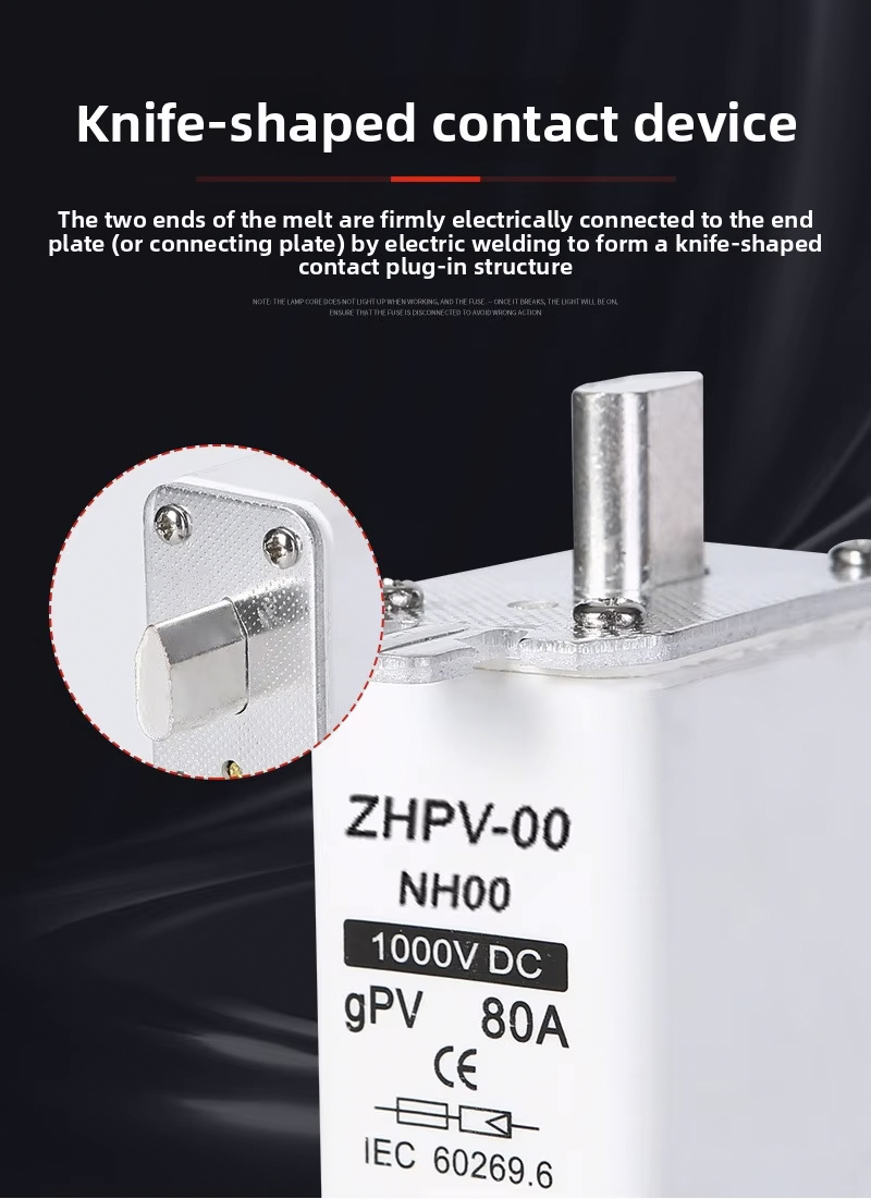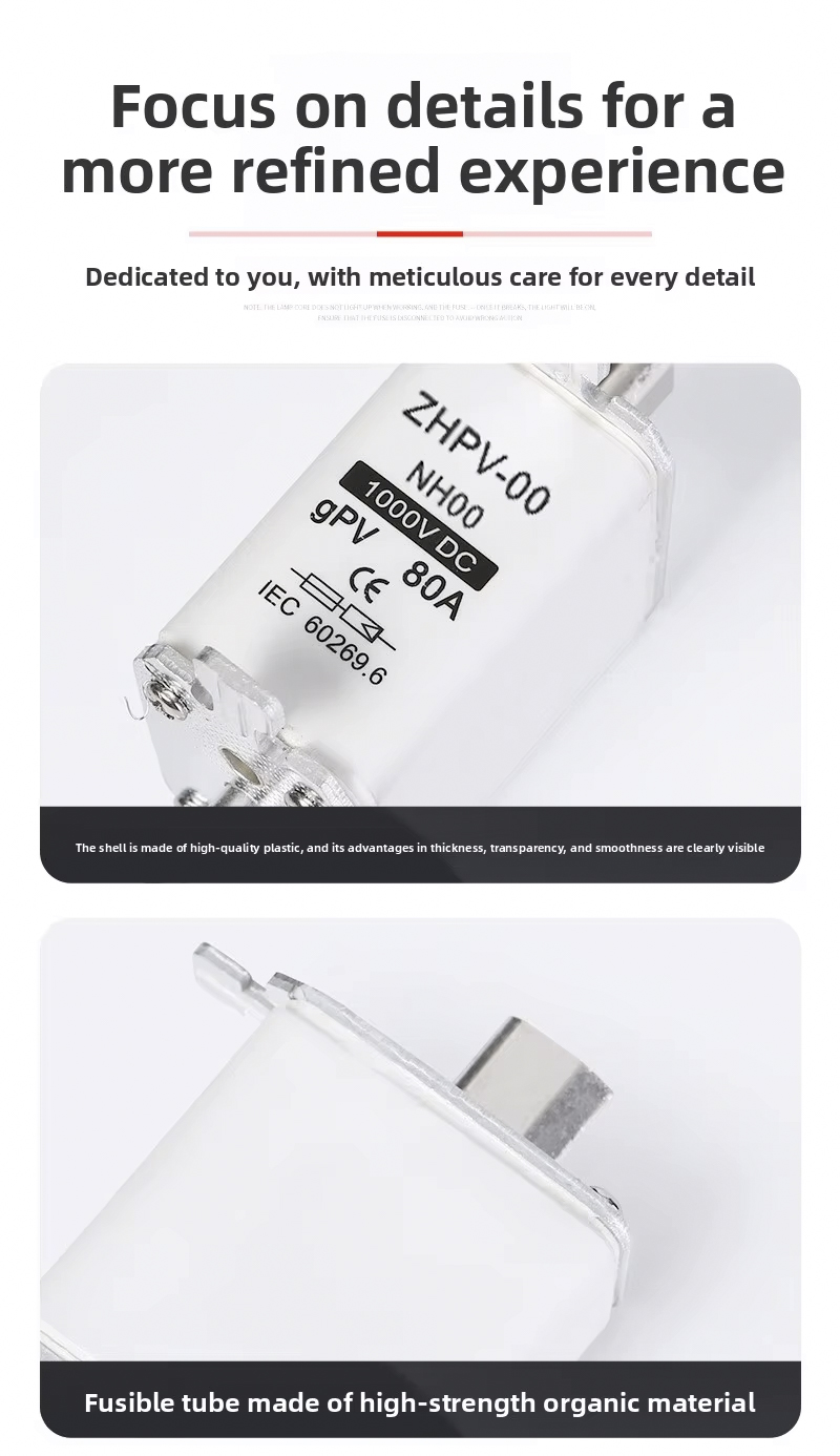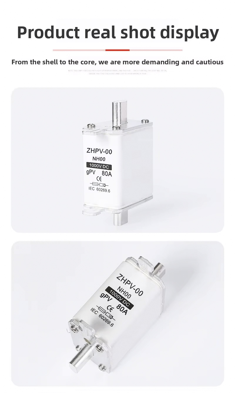 NH00-1000V IEC Low Voltage Photovoltaic Knife Fuse Plastic 80A 6ka Breaking Capacity dirancang kanggo proteksi sirkuit sing efisien lan dipercaya ing sistem fotovoltaik lan aplikasi tegangan rendah liyane. Sekring kualitas dhuwur iki makaryakke nganti 1000V, kanthi kapasitas breaking kuwat saka 6ka, mesthekake pedhot aman ing cilik saka overloads utawa short circuits. Saiki sing dirating 80A ndadekake cocok kanggo macem-macem instalasi PV lan panel kontrol industri.